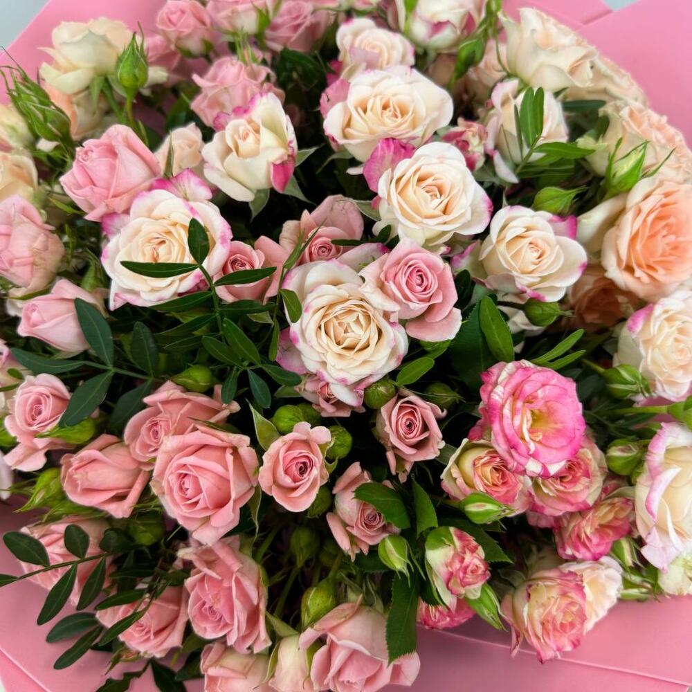 Кустовые розы – это уже настоящая композиция, ведь одной веточки зачастую достаточно, чтобы создать оригинальный и лаконичный презент. Впрочем, главная особенность такого цветка заключается в его сочетаемости с другими, а потому можно приобрести как монобукет в пастельной и страстной гамме, так и микс-сборку с различными бутонами.