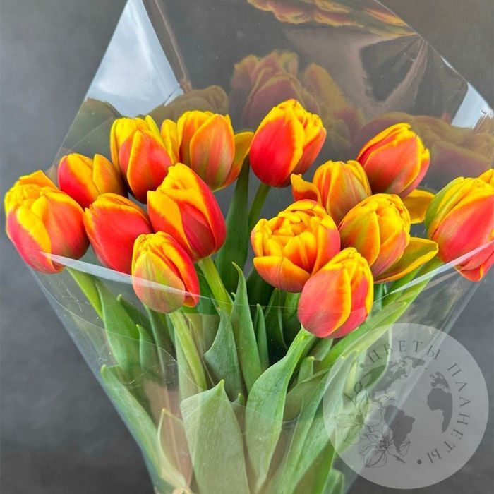 11 красно-желтых пионовидных тюльпанов