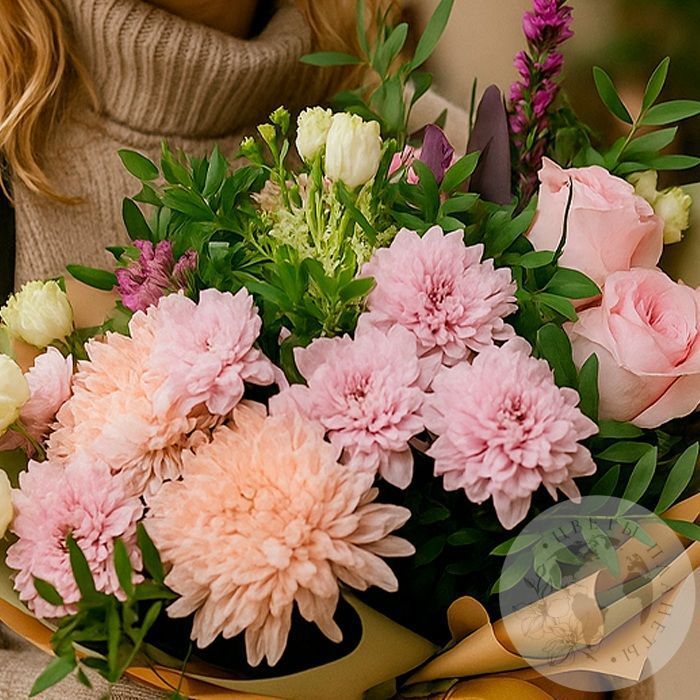 Букет из альстромерий, эустому и роз