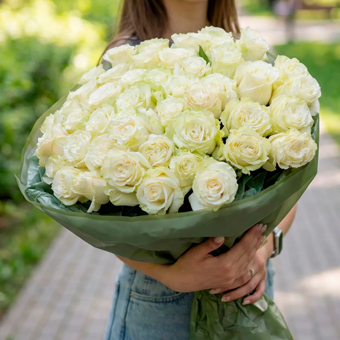 Букет из белых роз Эквадор 25 шт. 60 см.