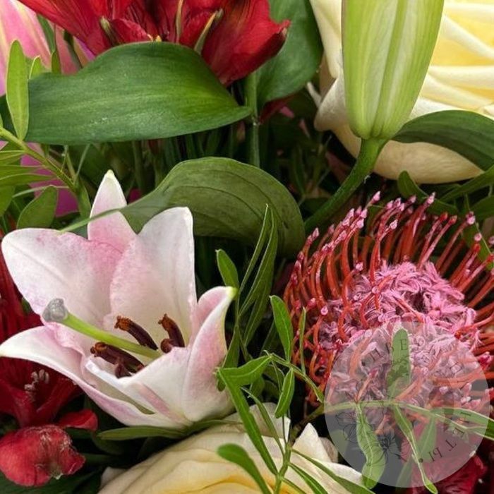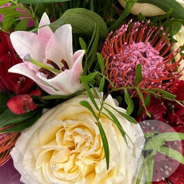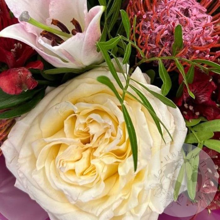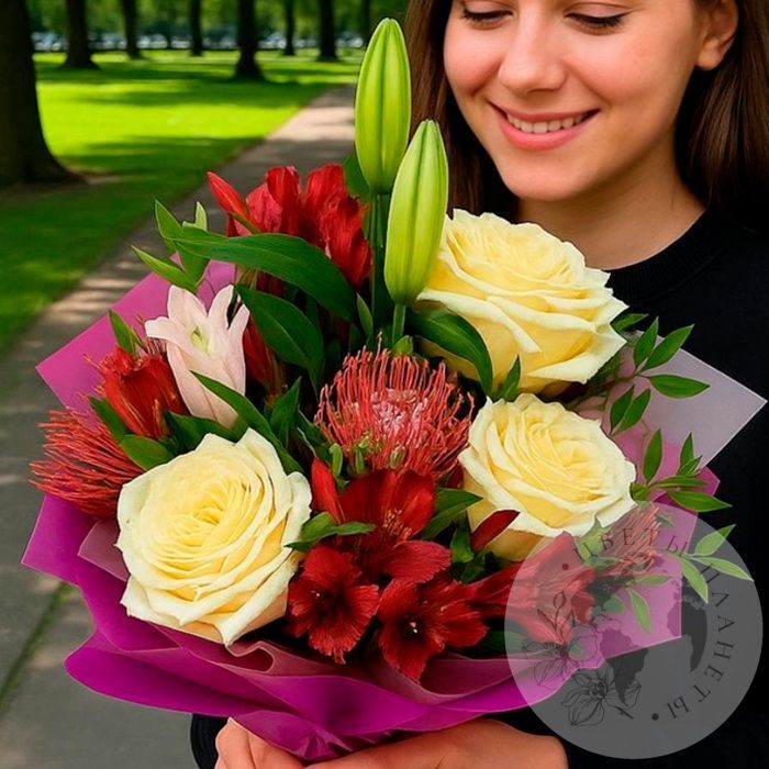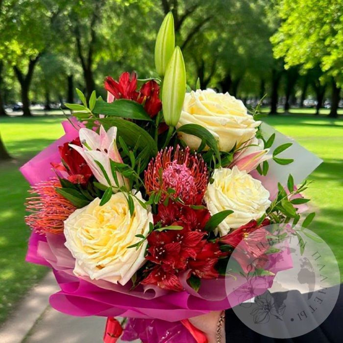 Букет из лилий, роз и фисташки