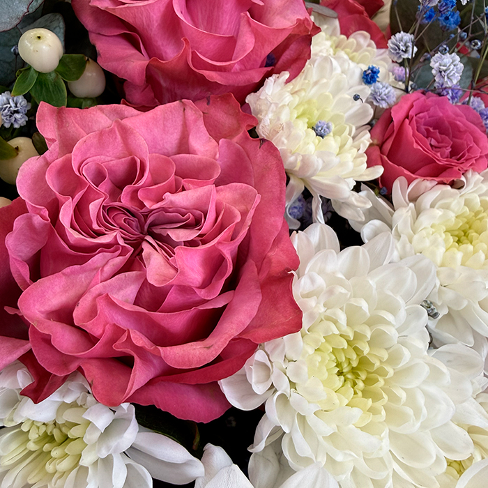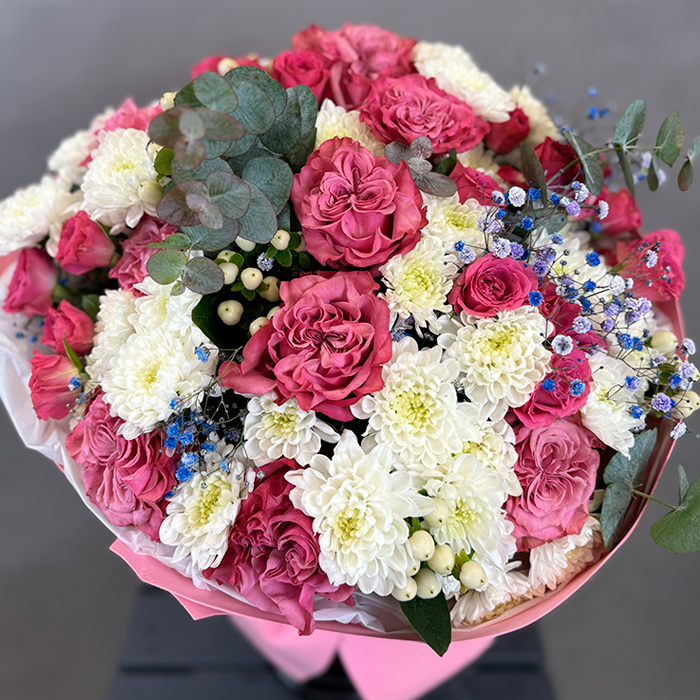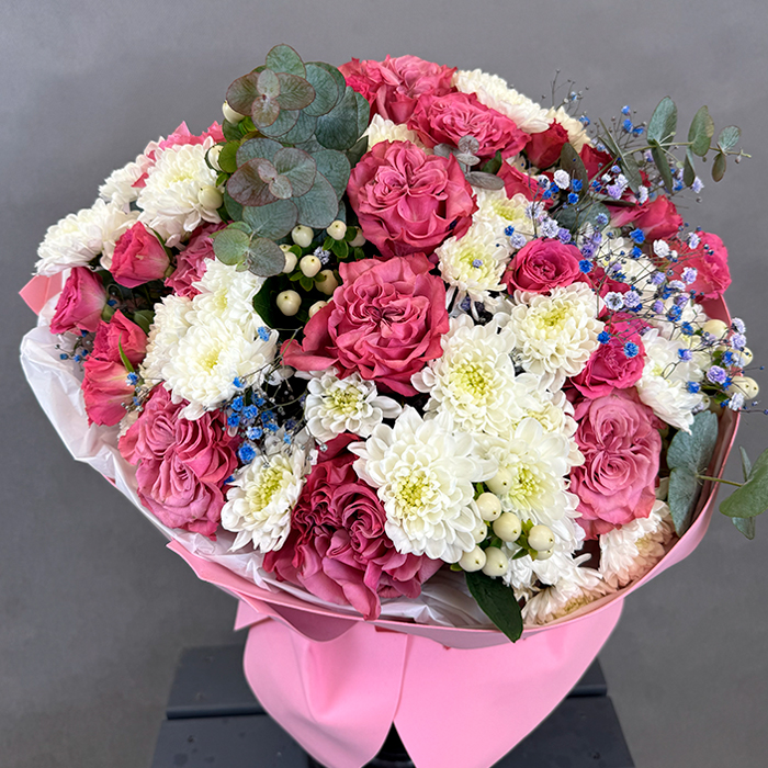 Букет из роз и гипсофилы крашенной