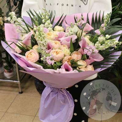 Букет из роз, калл и маттиолы