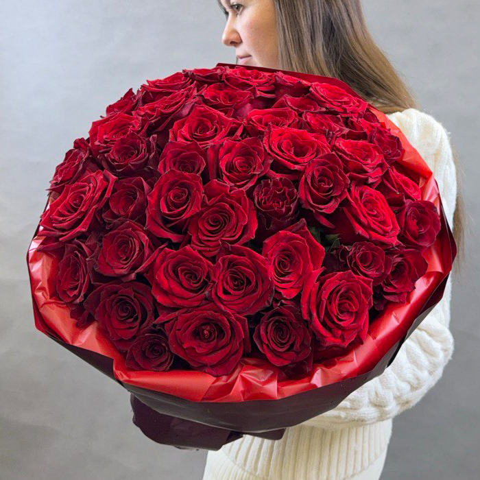 Букет красных роз Эквадор 25 шт. 70 см.