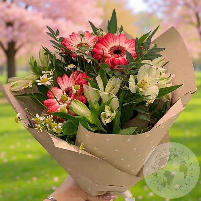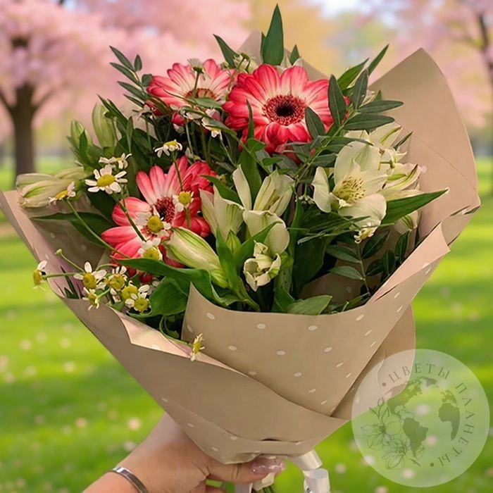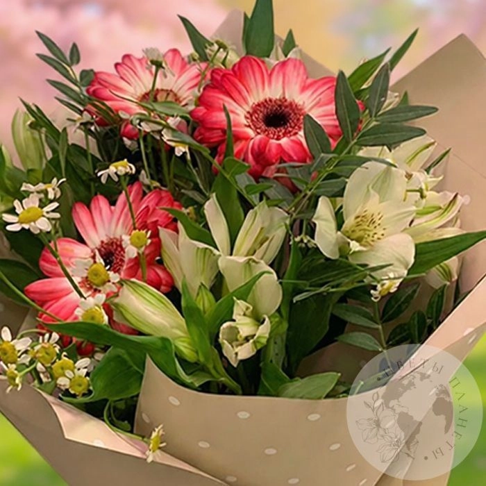 Букет из альстромерии, ромашек и гербер "На торжество"