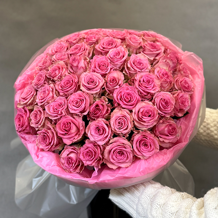 Букет розовых роз Эквадор 25 шт. 60 см.