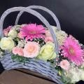 Только свежие цветы, разнообразие композиций, плетенная корзинка останется у одаряемого.