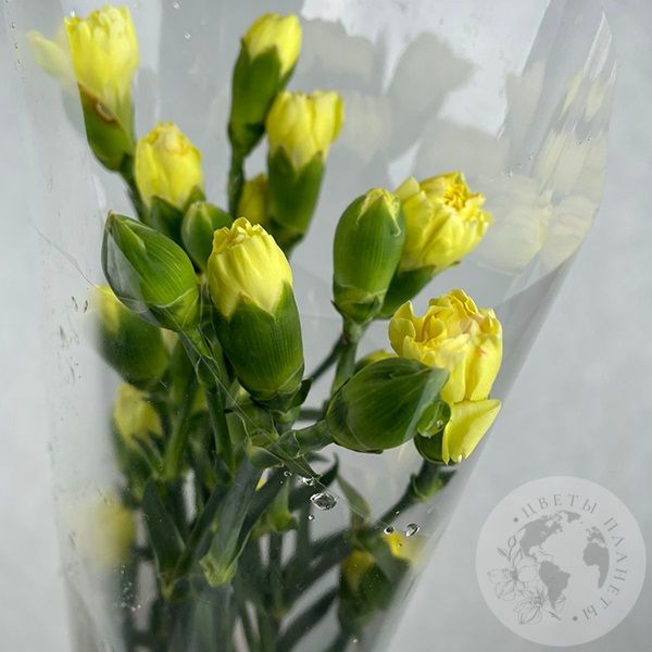 11 кустовых гвоздик желтых