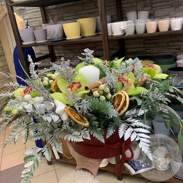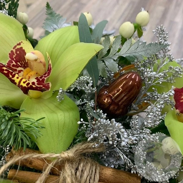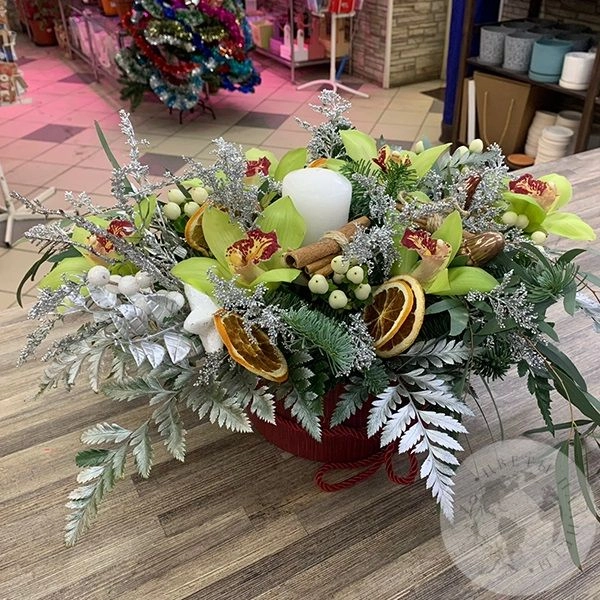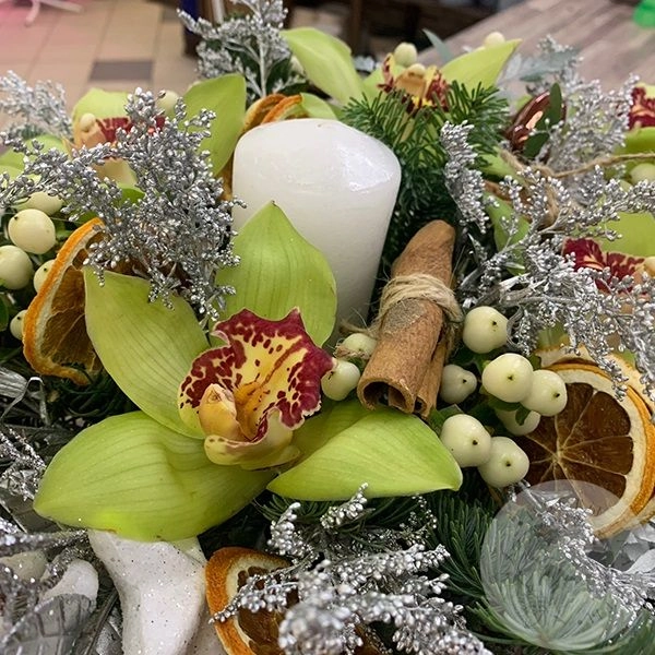 Композиция из орхидей, солидаго, эвкалипта "Свеча с орхидеей"