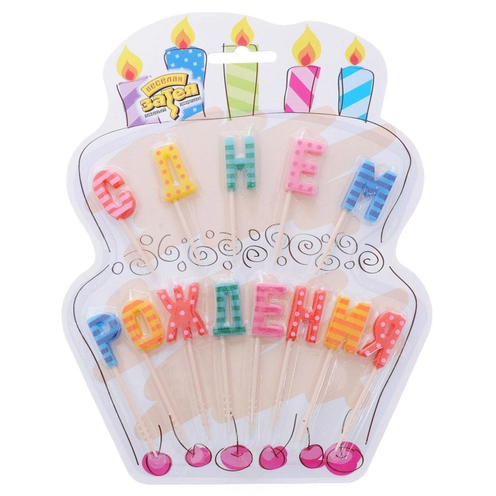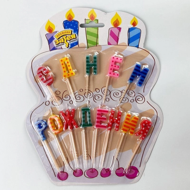 Свечи для торта "С днем рождения" цветные, 13 шт.